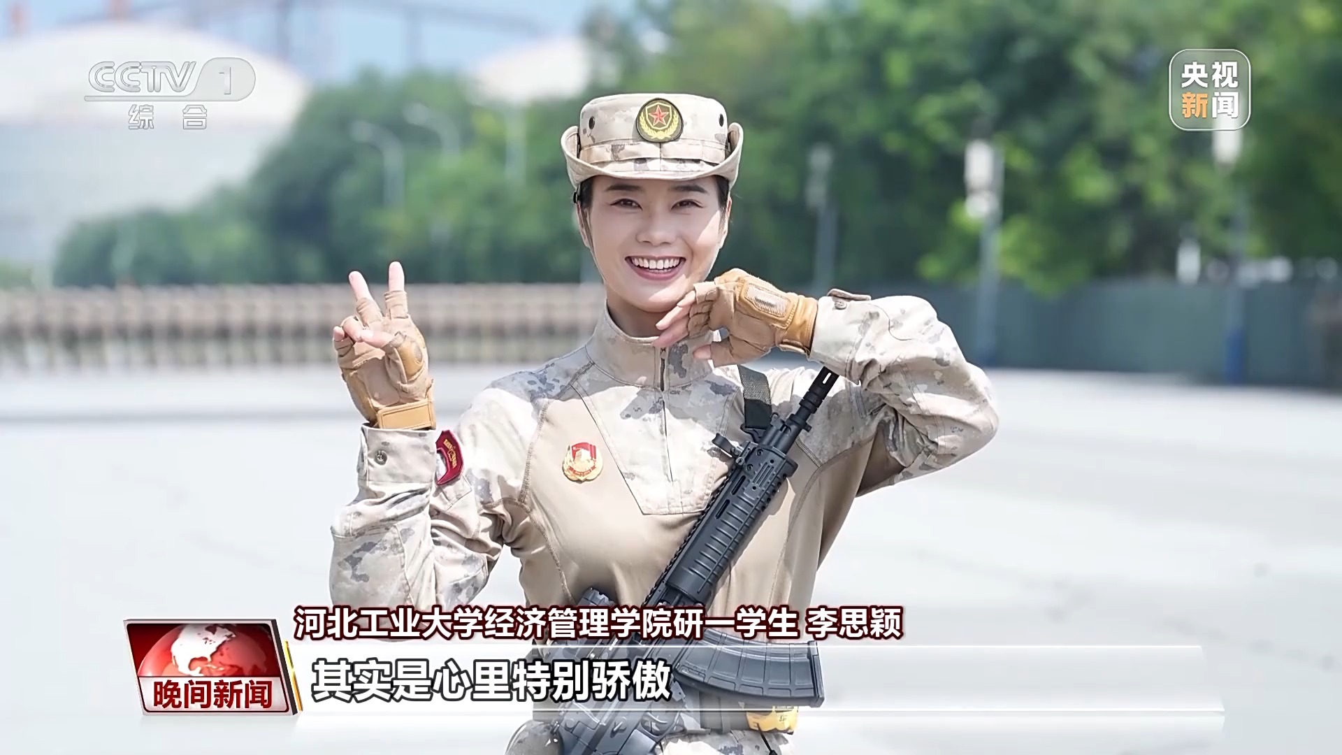 河北工业大学经济管理学院研一学生 李思颖:当时我听到能有阅兵这么好的机会,感觉很好。但是在阅兵村就可能错失研究生复试的机会,但是我们当时说的那句“若有战 召必回”不是空话,这就是国家需要咱们的时候,应该顶上。