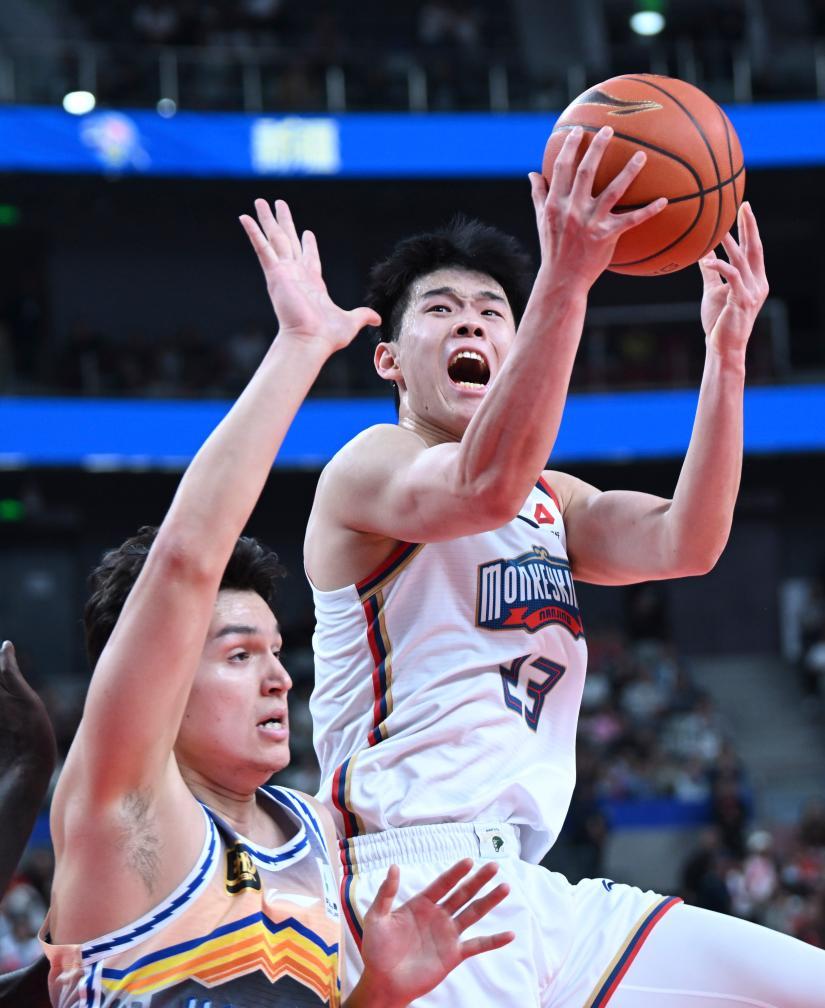 资料图:林葳(右)在比赛中上篮。林葳新华社记者 胡虎虎 摄