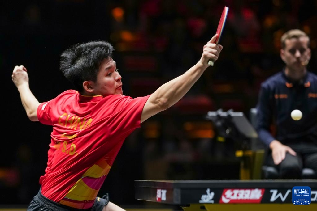 10月2日,大满栋晋单强林诗栋在比赛中回球。贯赛