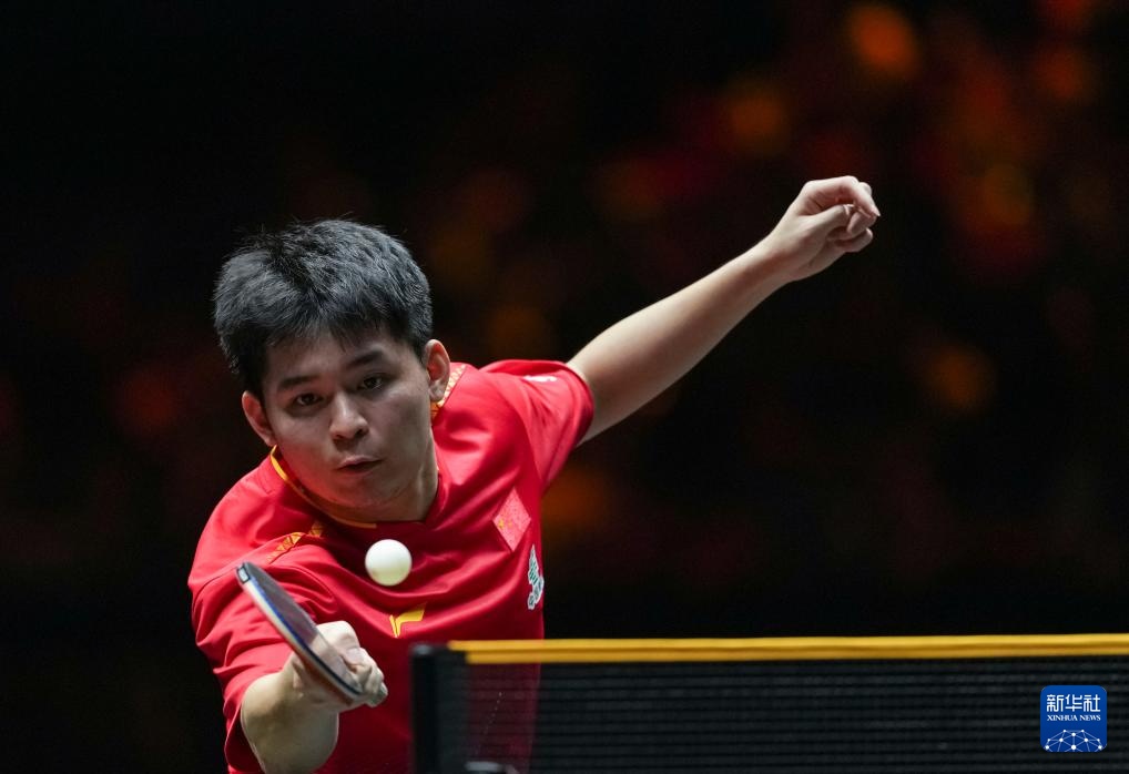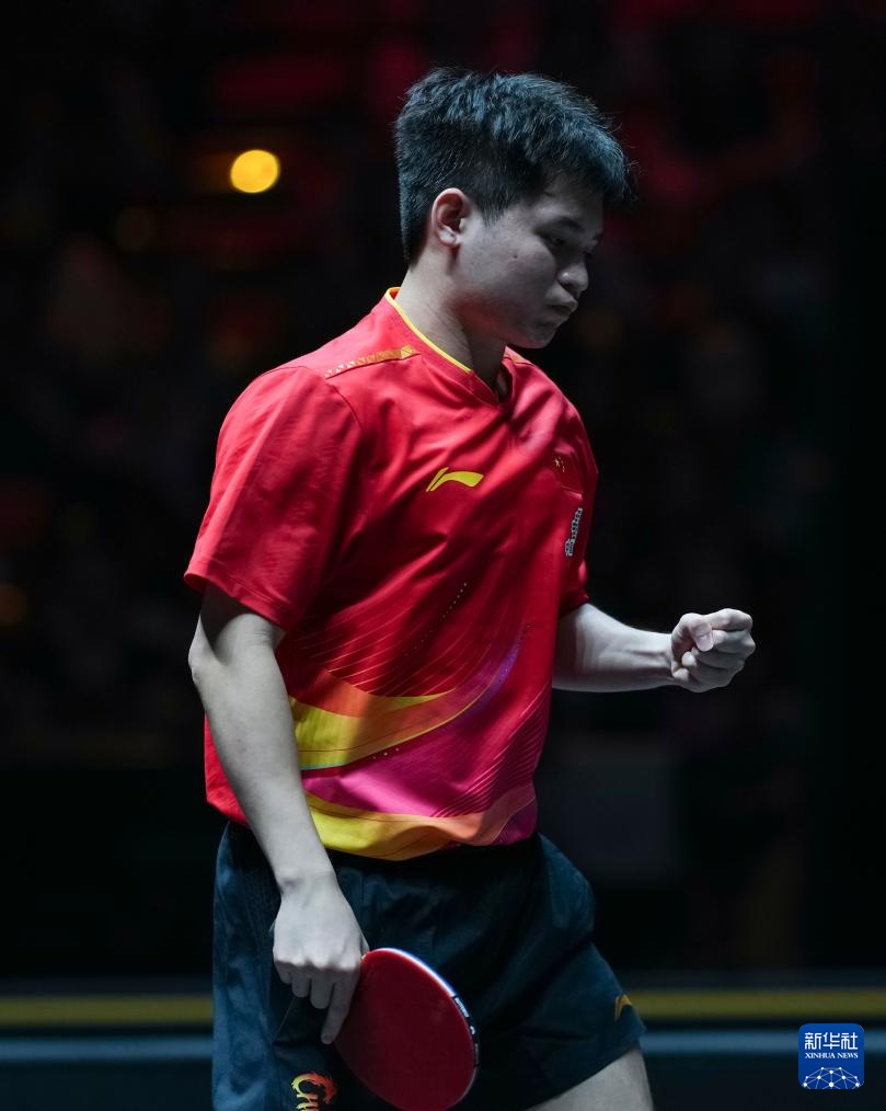 10月2日,中国林诗栋在比赛中庆祝得分。大满栋晋单强