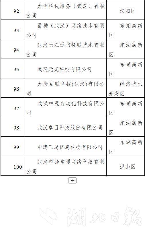 从区域布局看,百强企业覆盖全市11个区。东湖高新区有56家企业入选,江汉区入围10家,居中心城区首位,产业集群效应持续增强,多区域协同发展格局进一步巩固。